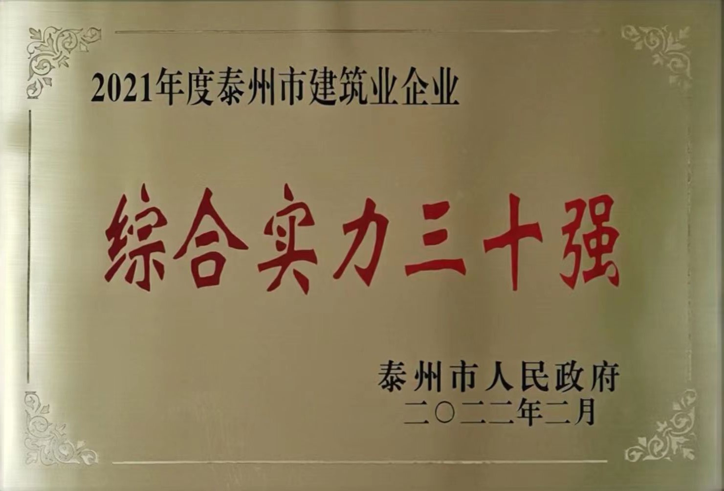 “江蘇省建筑業(yè)優(yōu)秀企業(yè)”、“江蘇省建筑業(yè)最具成長(zhǎng)性百?gòu)?qiáng)企業(yè)”,2016年被國(guó)家工商總局授予“國(guó)家級(jí)守信用重合同企業(yè)”,2015年被全國(guó)總工會(huì)授予“全國(guó)模范職工之家”稱號(hào),2018年被中國(guó)建筑企業(yè)協(xié)會(huì)評(píng)為“2017年度建筑業(yè)AAA級(jí)信用企業(yè)”